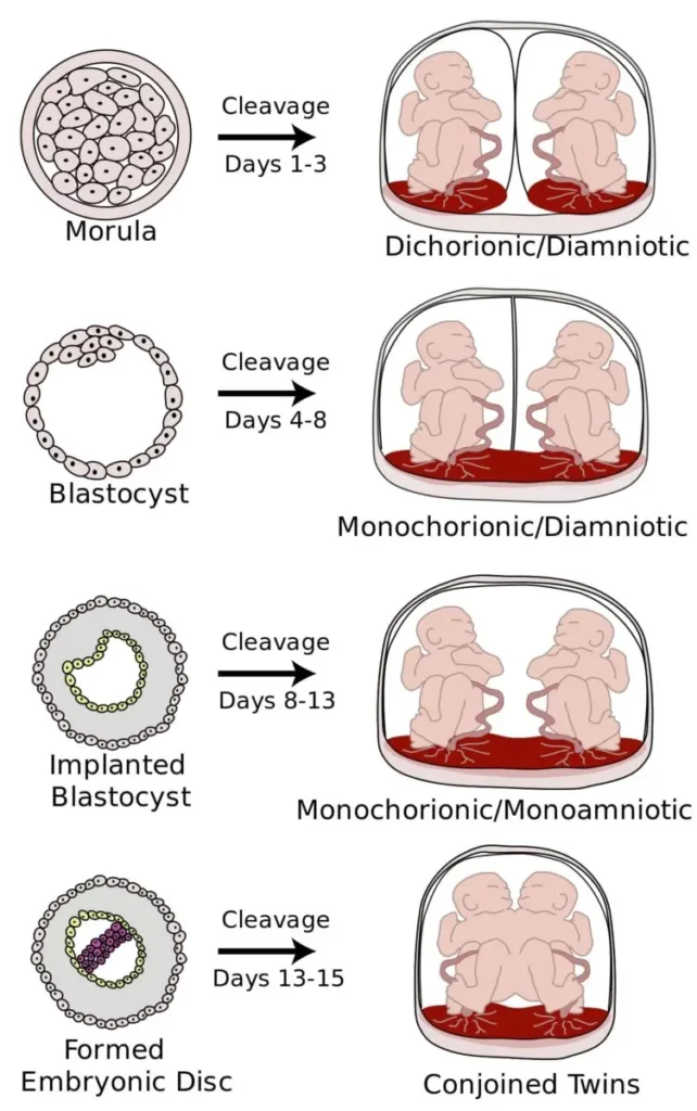 Diese Art der Mehrlingsschwangerschaft wird auch als monochoriale diamniote zwillingsschwangerschaft bezeichnet, da sie am häufigsten bei Zwillingen vorkommt. Sie kann aber auch bei Drillingen, Vierlingen oder noch höheren Mehrlingsschwangerschaften auftreten.