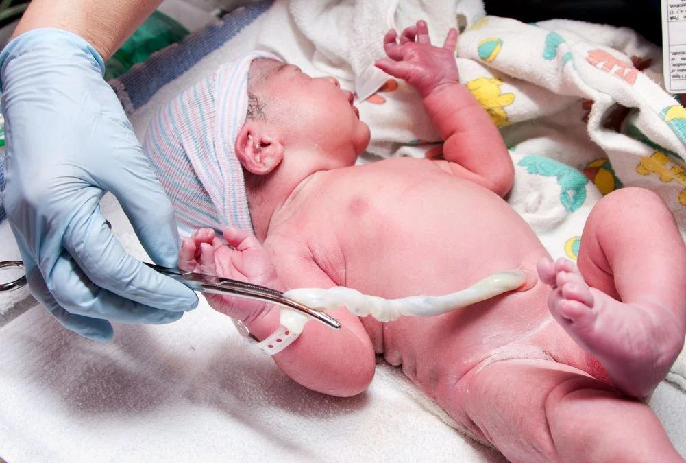 Nach der Geburt ist es wichtig, dass die Nabelschnur intakt bleibt und erst durchtrennt wird, wenn sie aufhört, zu pulsieren. So kann das Baby die restliche Menge an Blut aus der Nabelschnur und der Plazenta erhalten, die es für den Start ins Leben benötigt.