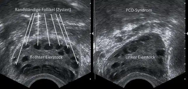 - Ultraschalluntersuchung der Eierstöcke: Diese Untersuchung zeigt, ob Zysten an den Eierstöcken vorhanden sind.