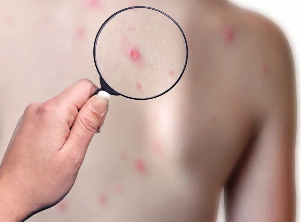 Kinder haben durchschnittlich 250 (zwischen 50 und mehreren hundert) verschiedene Ausschläge gleichzeitig auf ihrer Haut. Der Ausschlag kann sich auf den ganzen Körper ausbreiten, einschließlich der Kopfhaut, des Gesichts, des Rumpfes, der Arme, der Beine und der Genitalien.
