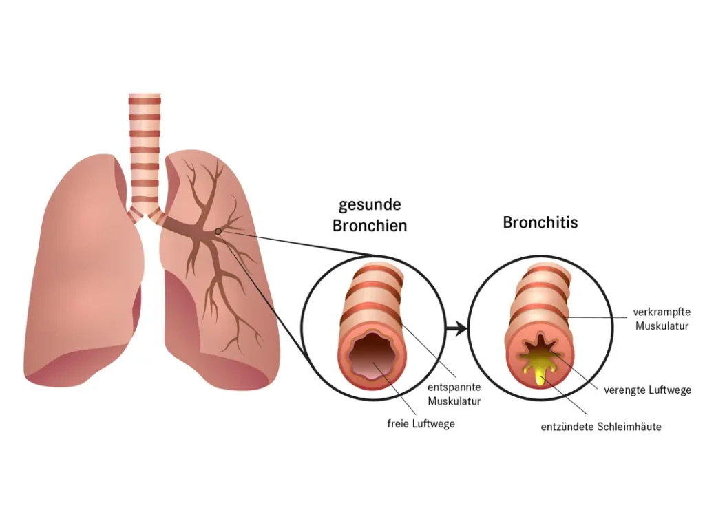 • Chronische Bronchitis: Eine langfristige Entzündung der Bronchien, die oft durch Rauchen oder Luftverschmutzung ausgelöst wird.