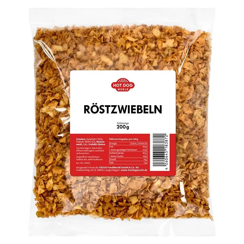 Röstzwiebeln sind ein beliebtes Lebensmittel, das durch das Frittieren von geschälten und geschnittenen Zwiebeln in Öl hergestellt wird. Der Prozess des Frittierens führt zu einer Karamellisierung des Zuckers in den Zwiebeln, was ihnen ihren charakteristischen süßlich-salzigen Geschmack verleiht. Röstzwiebeln sind ein vielseitiges Lebensmittel, das sowohl als Topping für Suppen, Salate und Burger verwendet werden kann, als auch als Zutat in verschiedenen Gerichten.