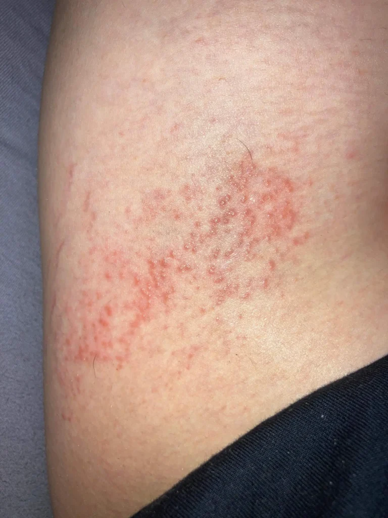 - Insektenbisse: Insektenbisse können zu roten, juckenden Flecken führen, die sich oft auch auf den Oberschenkeln befinden.