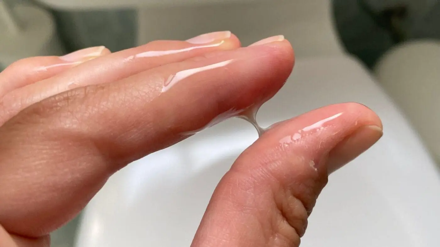 - Als dünnflüssiger Schleim: Der Schleimpfropf kann auch als dünnflüssiger Schleim abgehen, der wie leicht blutiger Ausfluss aussieht.