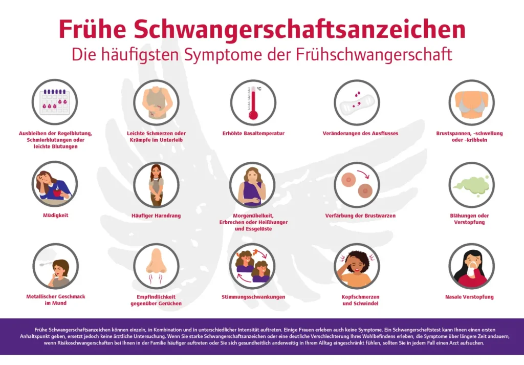 Die ersten Anzeichen einer Schwangerschaft können sehr unterschiedlich sein und nicht bei allen Frauen gleich stark ausgeprägt sein. Einige der häufigsten Anzeichen sind: