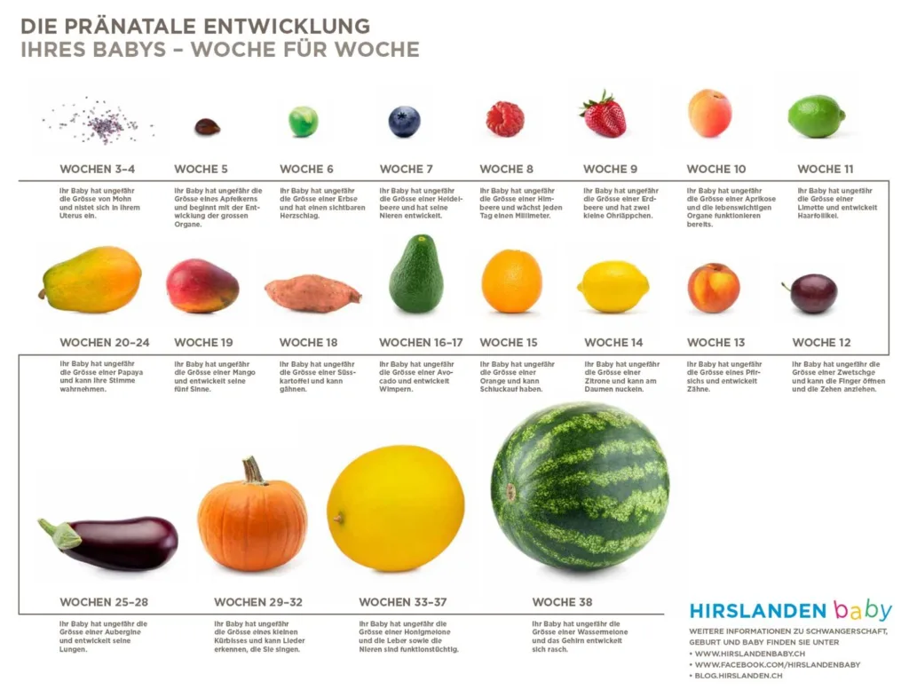 | Schwangerschaftswoche | Größe des Babys | Vergleich |