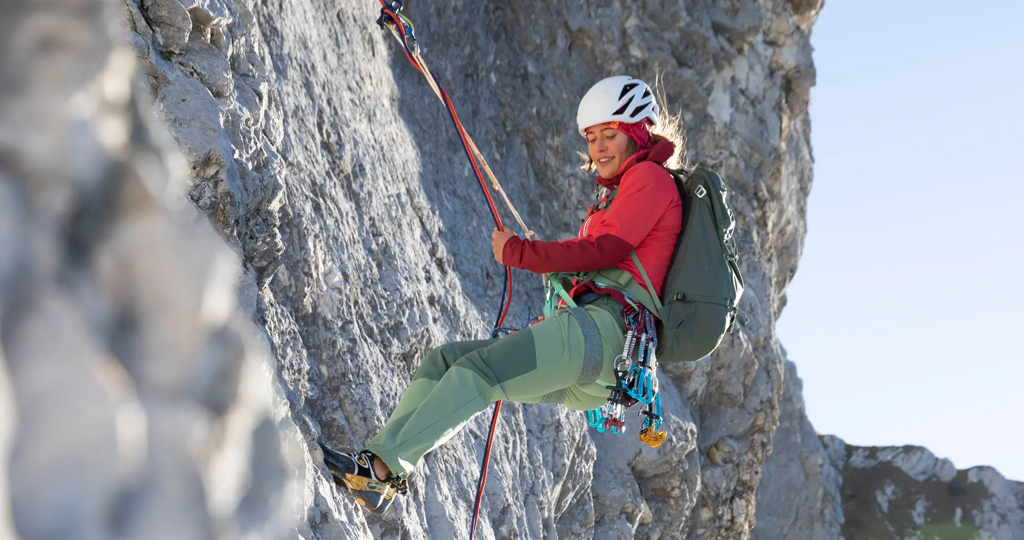 Bei kälteren Temperaturen kann ein Softshellanzug als Zwischenschicht unter einer Hardshelljacke getragen werden.