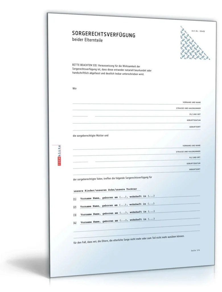 • Hinterlegung der Verfügung: Es ist empfehlenswert, die Sorgerechtsverfügung bei einem Notar oder einem anderen sicheren Ort zu hinterlegen, damit sie im Falle des Todes der Eltern schnell gefunden werden kann.