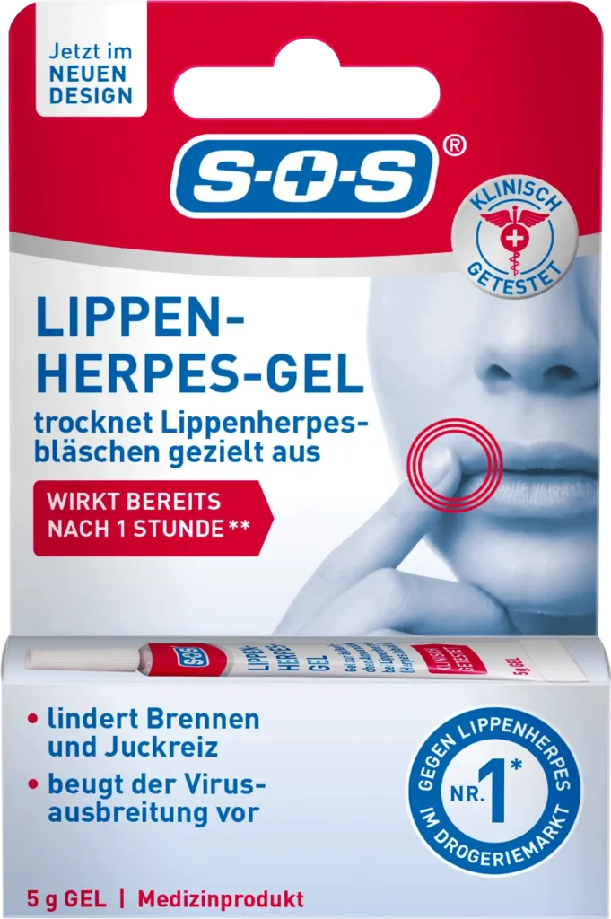 SOS Lippenherpes Gel kann die Dauer und Schweregrad von Lippenherpes-Ausbrüchen reduzieren, indem es die Symptome wie Juckreiz, Brennen, Schmerzen und Blasenbildung lindert.