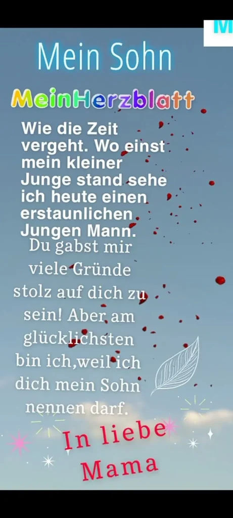 Es gibt viele Anlässe, bei denen Sie Ihrem Sohn Ihre Liebe und Ihren Stolz ausdrücken können. Hier sind einige Sprüche für besondere Momente: