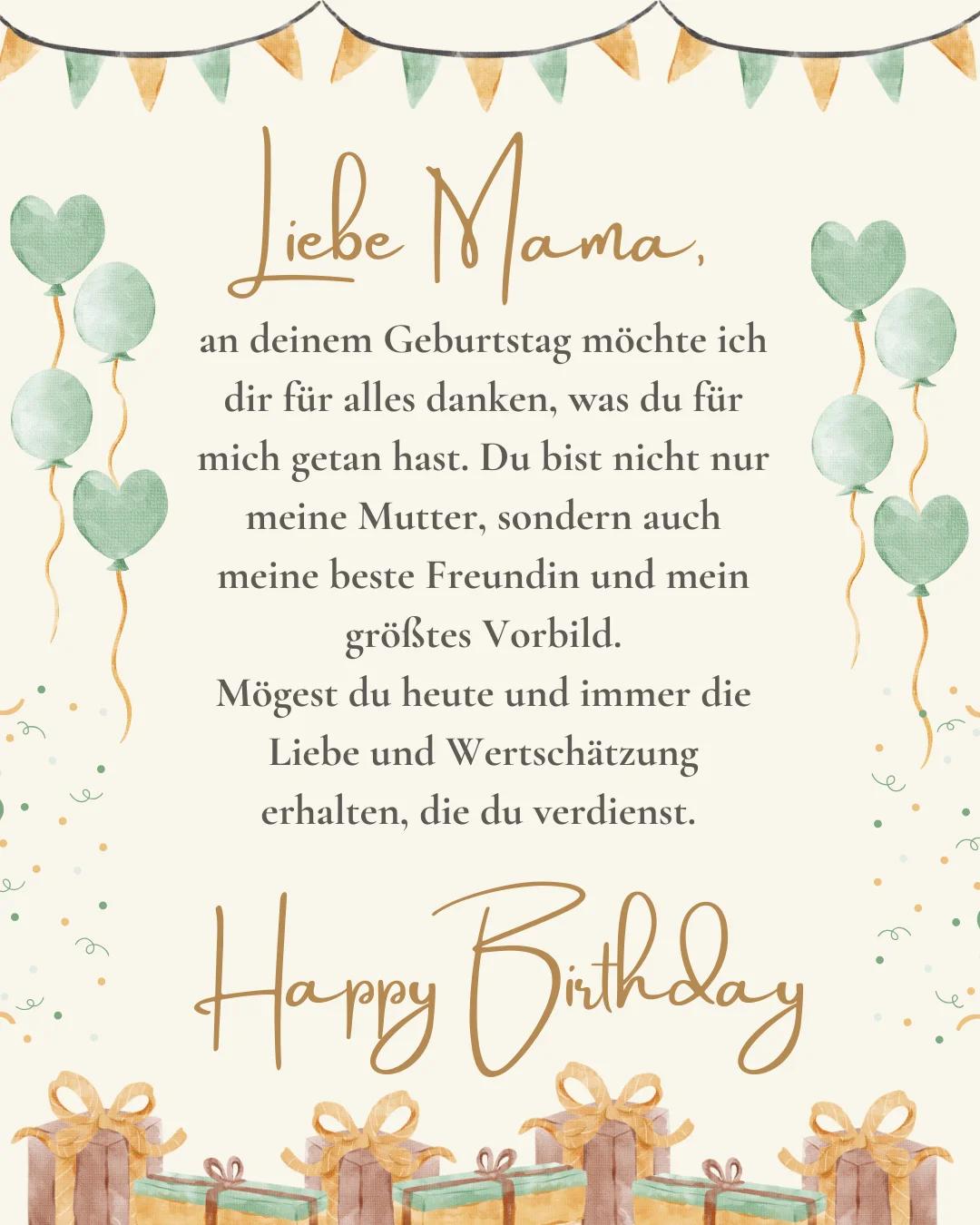 Hier finden Sie eine Auswahl an Sprüchen, die Sie als Inspiration für Ihre eigenen Glückwünsche nutzen können. Passen Sie die Sprüche an die Persönlichkeit Ihrer Mutter an und fügen Sie persönliche Details hinzu, die Ihre einzigartige Beziehung widerspiegeln.