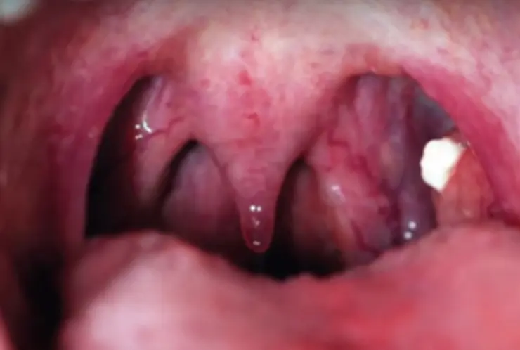 - Sichtbare weiße oder gelbe Punkte in den Mandeln : Tonsillensteine können in den Mandeln sichtbar sein.