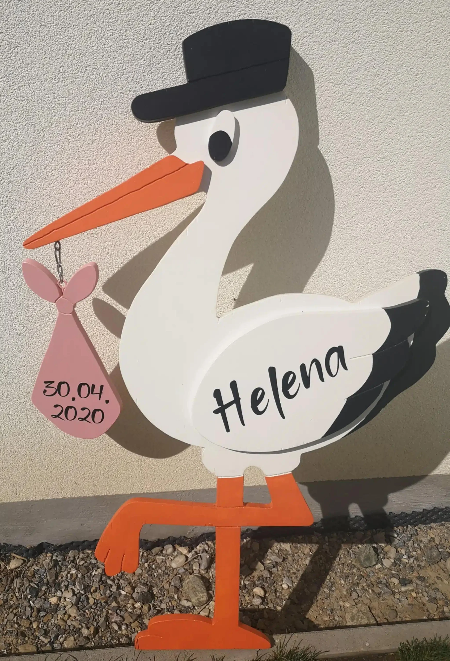 Es ist auch möglich, den Storch erst nach der Geburt des Babys aufzustellen, wenn die Eltern und das Baby sich im Elternhaus eingelebt haben.