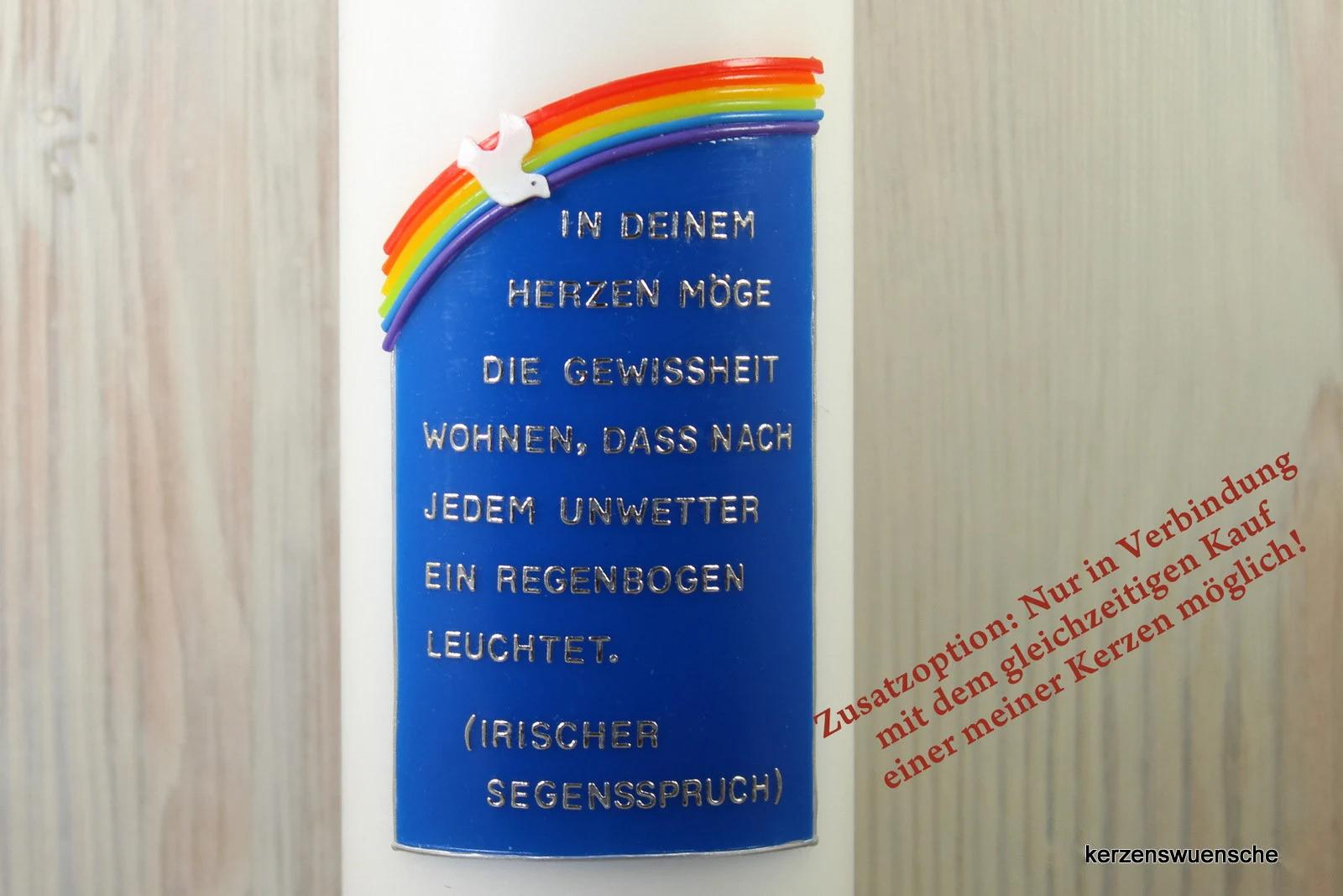 Bei der Taufe wird der Regenbogen oft als Symbol für den Bund Gottes mit dem Täufling verwendet. Er steht für die Hoffnung auf ein neues Leben in Christus, ein Leben voller Freude, Frieden und Liebe. Der Regenbogen erinnert uns daran, dass Gott uns liebt und uns nie verlassen wird.