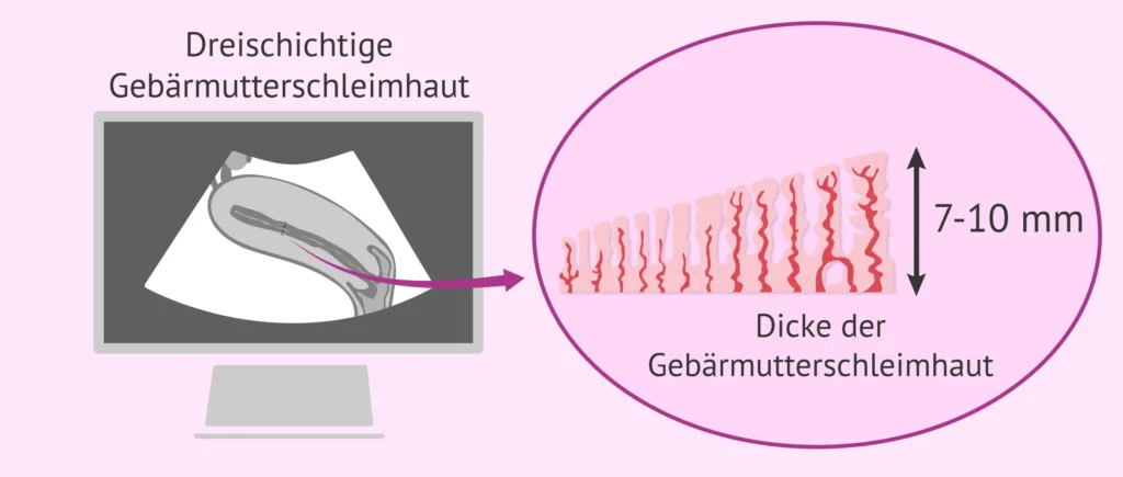 Die Dicke der Gebärmutterschleimhaut ist ein wichtiger Indikator für die Einnistung der Eizelle. Eine Dicke von 7 bis 8 mm gilt als optimal. Eine zu dünne Schleimhaut kann die Einnistung erschweren. Eine zu dicke Schleimhaut kann hingegen ein Zeichen für eine hormonelle Störung sein.