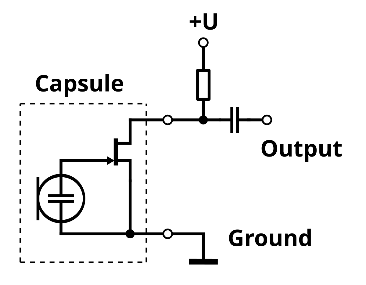 Der Mikrofonverstärker im Mikrofon ist also ein Impedanzwandler, der nicht die Spannung, sondern den Strom verstärkt. Die Verstärkung erfolgt mit einem Faktor von 1, d. H. Die Spannung des Signals bleibt unverändert. Der Mikrofonverstärker sorgt lediglich dafür, dass das Signal mit minimalen Verlusten über das Kabel übertragen werden kann.
