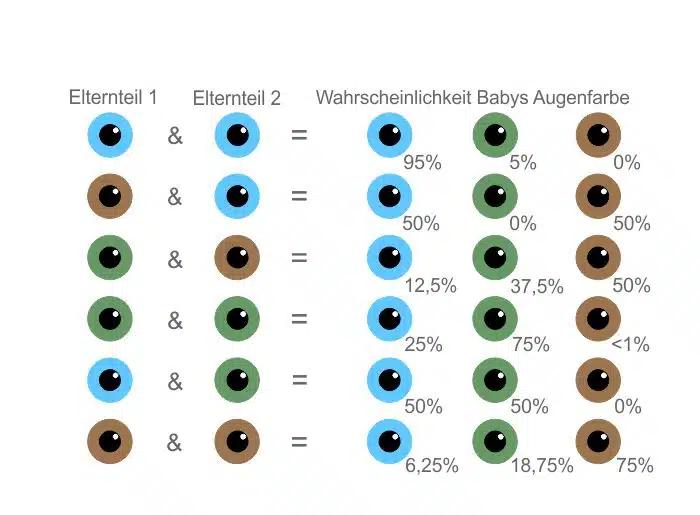 Die Augenfarbe eines Babys wird durch die Gene der Eltern bestimmt. Diese Gene tragen Informationen über die Produktion des Pigments Melanin, das für die Farbe der Iris verantwortlich ist. Melanin gibt den Augen ihre Farbe, von Braun über Grün bis hin zu Blau.