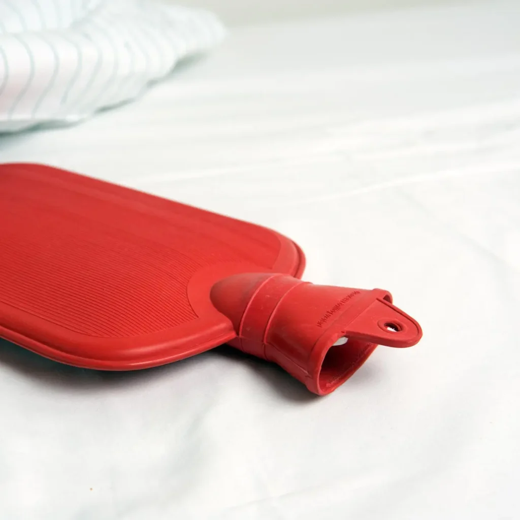 - Temperatur: Die Wärmflasche sollte nicht zu heiß sein. Testen Sie die Temperatur vor dem Anlegen an einer anderen Körperstelle, um Verbrennungen zu vermeiden.