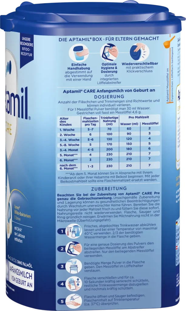 Es ist wichtig, dass Sie Ihrem Baby nur so viel Pre-Nahrung geben, wie es braucht. Wenn Sie sich nicht sicher sind, wie viel Nahrung Ihr Baby benötigt, sprechen Sie mit Ihrem Kinderarzt.