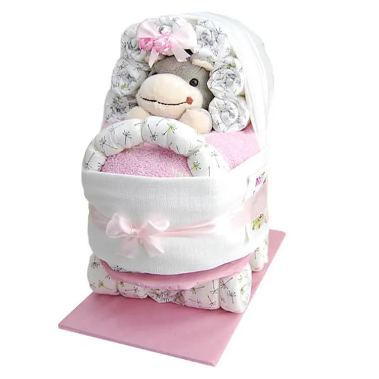 Windeltorten für Mädchen lassen sich besonders schön mit süßen Dekorationen wie Schleifen, Blumen und Kuscheltieren verzieren. Hier sind ein paar Ideen für Windeltorten für Mädchen: