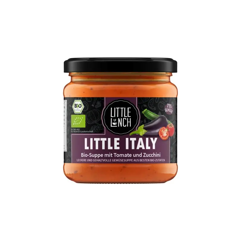 Little Lunch bietet eine breite Auswahl an Suppen, Eintöpfen, Saucen und Currys in Bio-Qualität. Die Gerichte sind ohne chemische Zusätze und Geschmacksverstärker und werden mittlerweile auch ohne zusätzlichen Zucker hergestellt. Der natürliche Zucker des Bio-Gemüses sorgt für den leckeren Geschmack. Die Suppen sind praktisch in Gläsern verpackt und lange haltbar. So können sie einfach überall hin mitgenommen und im Büro schnell erwärmt werden.