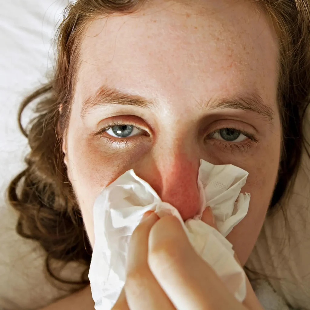 - Juckreiz : Die Nase kann stark jucken.